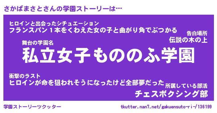 | 女子向けラノベタイトル風あだ名 | 『誰かこのさかばまさとを説明してください! ~契約から始まるウェディング~』 |