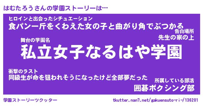| 肩書あだ名 | 『はむたろう御曹司』『はむたろう塾長』 |