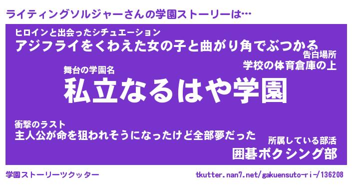 | 男性向けラノベタイトル風あだ名 | 『ライティングソルジャーの憂鬱』 |