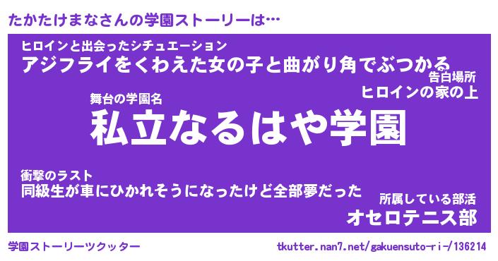 | 肩書あだ名 | 『たかたけまな社長令嬢』 |