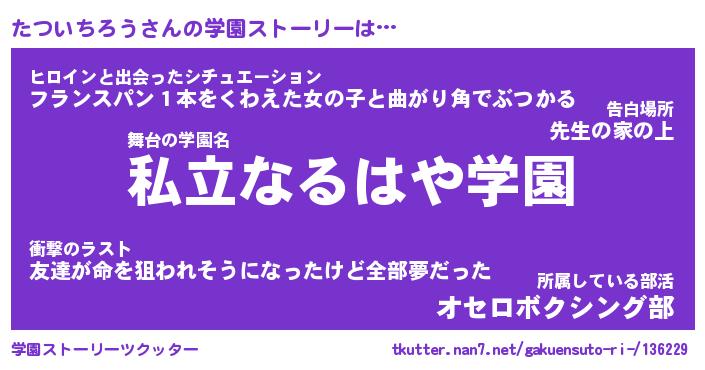 | 男性向けラノベタイトル風あだ名 | 『たついちろうの憂鬱』 |
