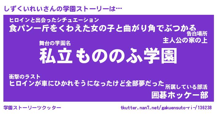 | 女子向けラノベタイトル風あだ名 | 『しずくいれい姫と円卓の騎士』 |