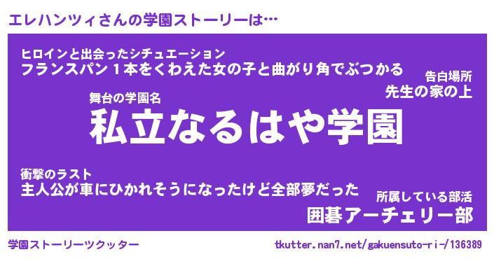 | 男性向けラノベタイトル風あだ名 | 『エレハンツィの憂鬱』 |
