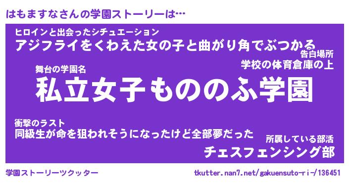 | 男性向けラノベタイトル風あだ名 | 『ハモマスナアートオンライン』 |