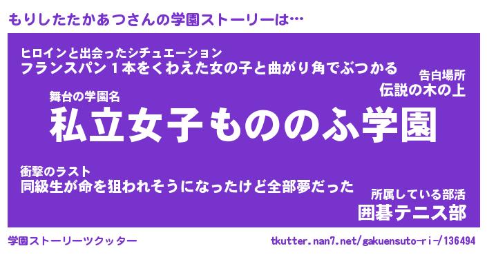 | 女子向けラノベタイトル風あだ名 | 『もりしたたかあつ姫と円卓の騎士』 |