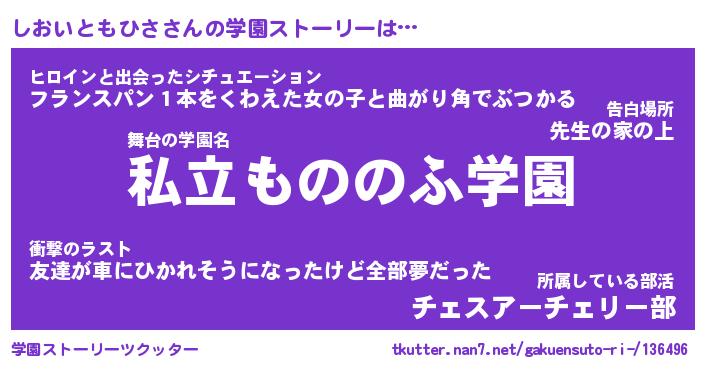 | 男性向けラノベタイトル風あだ名 | 『しおいともひさの憂鬱』 |