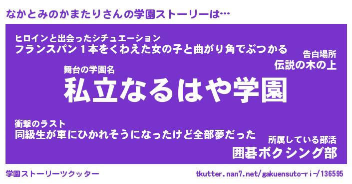 | 女子向けラノベタイトル風あだ名 | 『なかとみのかまたり姫と円卓の騎士』 |