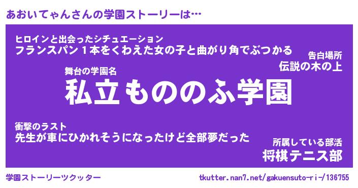 | 男性向けラノベタイトル風あだ名 | 『あおいてゃんの憂鬱』 |