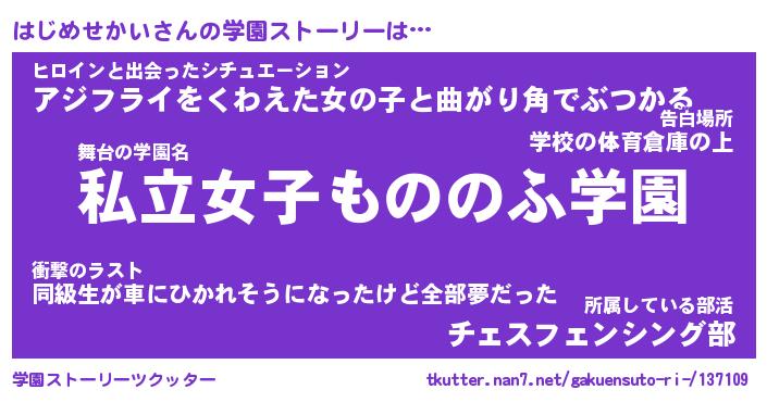 | 告白場所 先生の家の上 …「ふぃぎゅこ」 | 2月17日 06:24 |