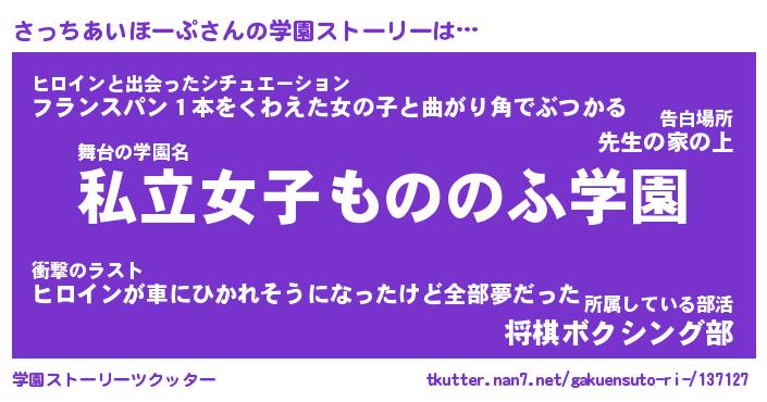 | 告白場所 先生の家の上 …「ふぃぎゅこ」 | 2月17日 06:24 |