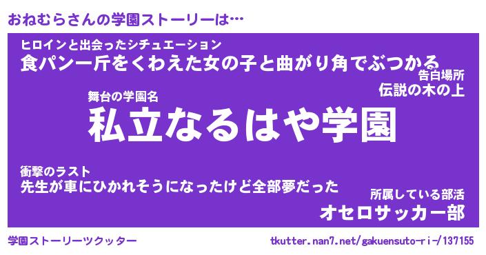 | 胡散臭い通販商品みたいなあだ名 | 『必ず成功する霊験あらたかなお札…その名も「おねむら」』 |