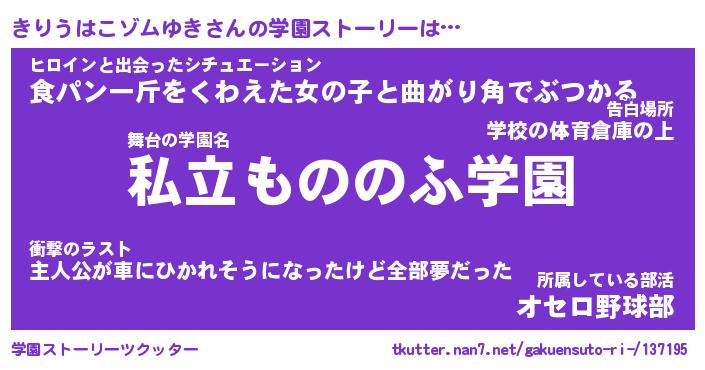 | 男性向けラノベタイトル風あだ名 | 『きりうはこゾムゆきの憂鬱』 |