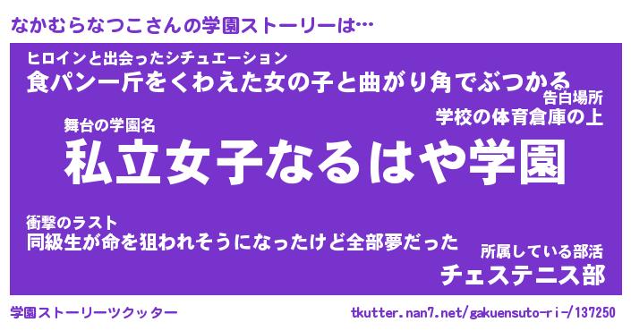 | 肩書あだ名 | 『なかむらなつこ社長令嬢』 |
