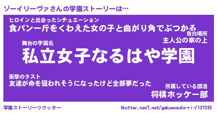 | 女子向けラノベタイトル風あだ名 | 『ゾーイリーヴァ姫と円卓の騎士』 |