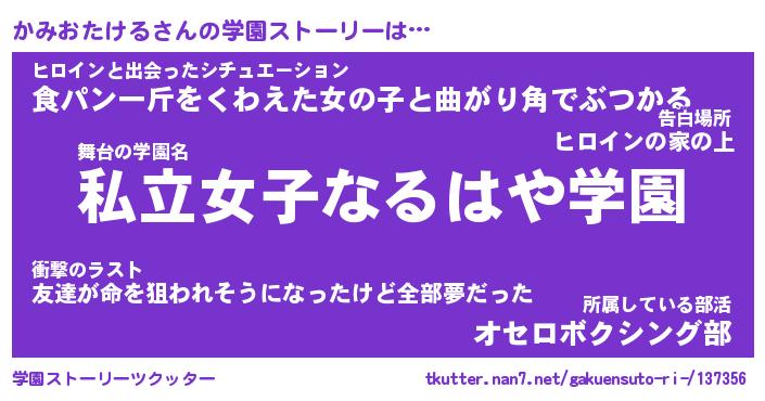 | 肩書あだ名 | 『かみおたける御曹司』 |