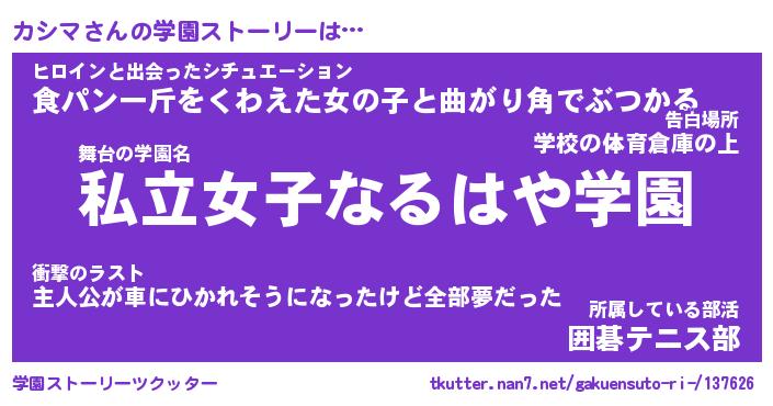 | ファンタジー風あだ名 | 『カシフェル』『エターナルカシマー』 |
