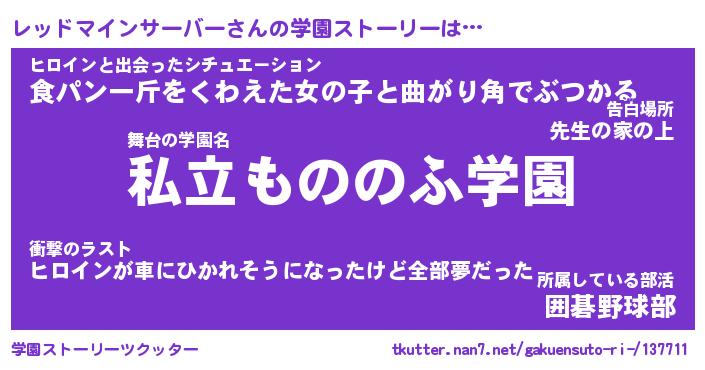 | 男性向けラノベタイトル風あだ名 | 『レッドマインサーバーの憂鬱』 |