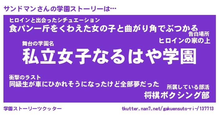 | 胡散臭い通販商品みたいなあだ名 | 『モテモテ間違いなし霊験あらたかなお札…その名も「サンドマン」』 |