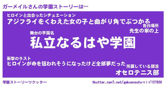 | 胡散臭い通販商品みたいなあだ名 | 『必ず成功する霊験あらたかなお札…その名も「ガーメイル」』 |