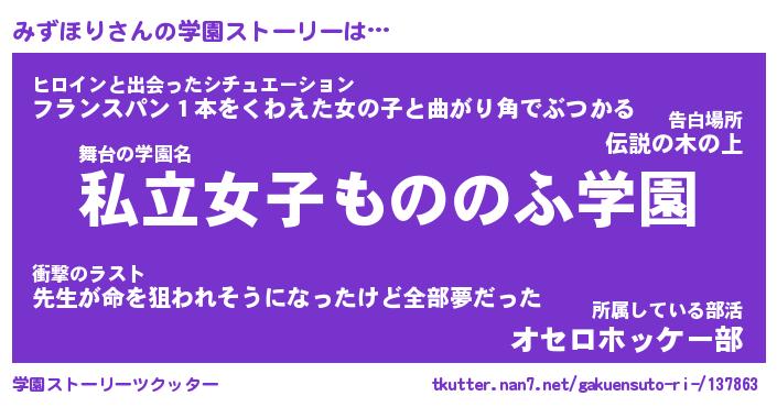 | ヒーロー風カッコイイあだ名 | 『スーパーミズホリ』『幻影騎士ミズ』 |