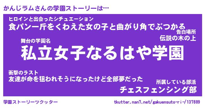 | 女子向けラノベタイトル風あだ名 | 『かんじラム姫と円卓の騎士』 |