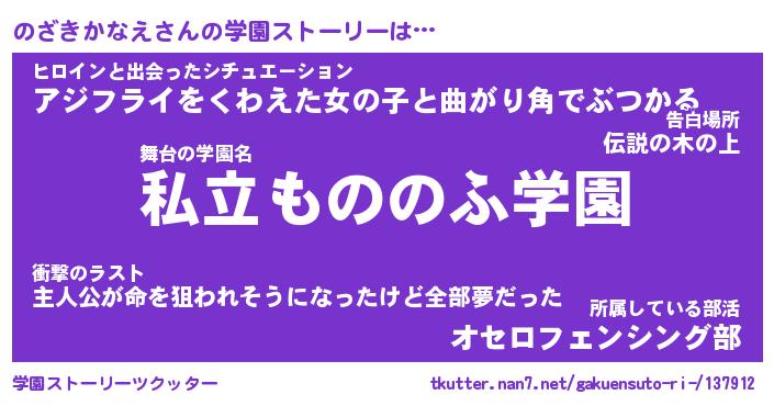 | 男性向けラノベタイトル風あだ名 | 『のざきかなえの憂鬱』 |