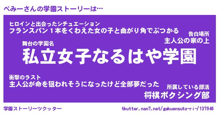 | 女子向けラノベタイトル風あだ名 | 『ぺみー姫と円卓の騎士』『ぺみー恋絵巻』 |