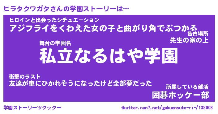 | 告白場所 先生の家の上 …「ふぃぎゅこ」 | 2月17日 06:24 |