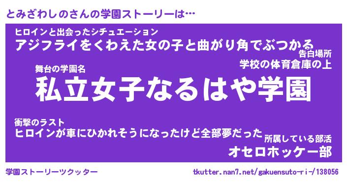 | ヒーロー風カッコイイあだ名 | 『スーパートミザワシノ』『暗黒騎士トミ』 |