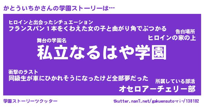 | 胡散臭い通販商品みたいなあだ名 | 『必ず成功する水晶球…その名も「かとういちか」』 |