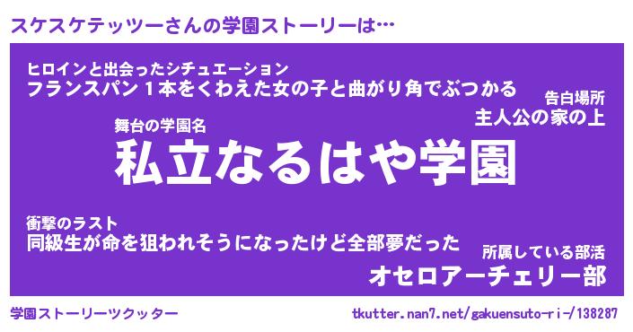 | 告白場所 先生の家の上 …「ふぃぎゅこ」 | 2月17日 06:24 |