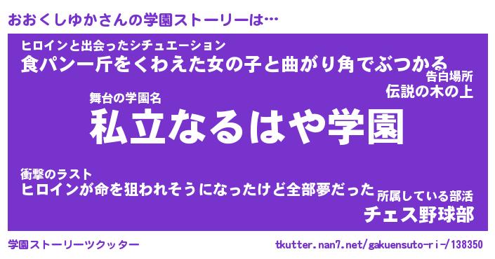 | 女子向けラノベタイトル風あだ名 | 『(仮)おおくしゆかのやんごとなき事情』 |