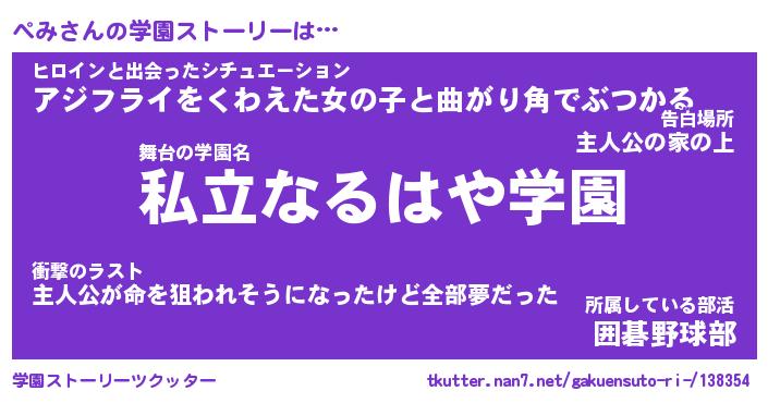 | 男性向けラノベタイトル風あだ名 | 『ぺみの憂鬱』 |