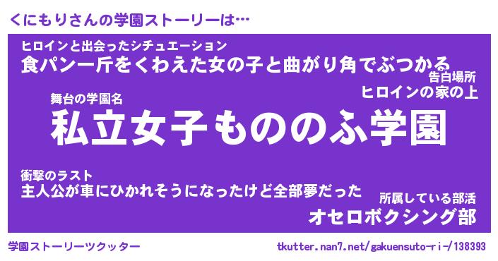 | 男性向けラノベタイトル風あだ名 | 『クニモリアートオンライン』 |