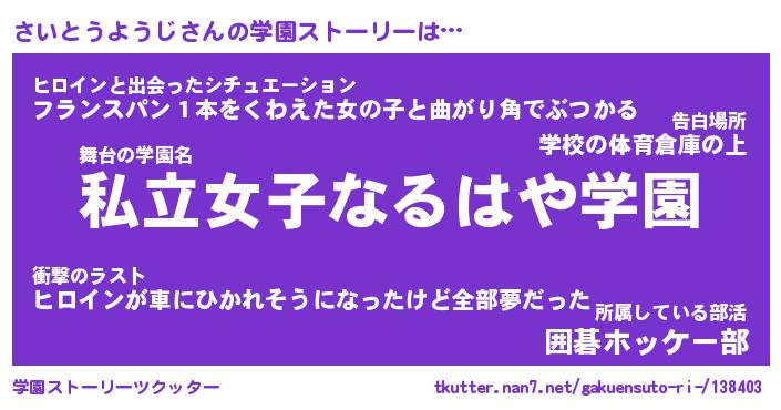 | 女子向けラノベタイトル風あだ名 | 『誰かこのさいとうようじを説明してください! ~契約から始まるウェディング~』 |