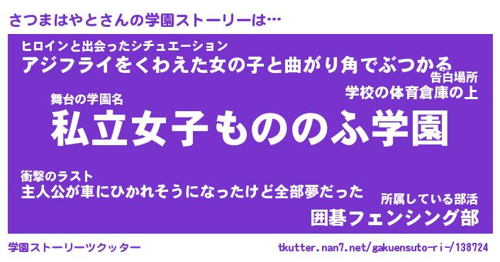 | 男性向けラノベタイトル風あだ名 | 『サツマハヤトアートオンライン』 |