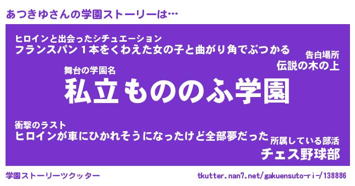| 男性向けラノベタイトル風あだ名 | 『あつきゆの憂鬱』 |