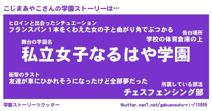 | 男性向けラノベタイトル風あだ名 | 『コジマアヤコアートオンライン』 |