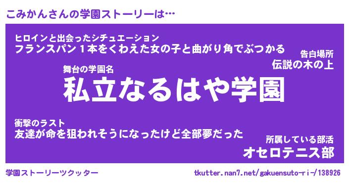 | 告白場所 先生の家の上 …「ふぃぎゅこ」 | 2月17日 06:24 |