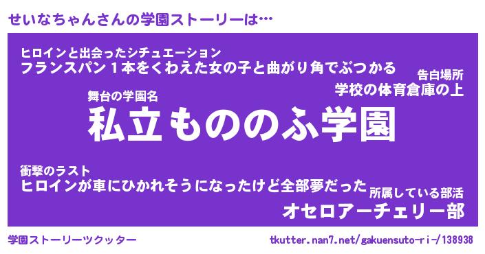 | 男性向けラノベタイトル風あだ名 | 『せいなちゃんの憂鬱』 |