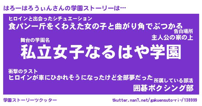 | 胡散臭い通販商品みたいなあだ名 | 『億万長者になれる水晶球…その名も「はろーはろうぃん」』 |