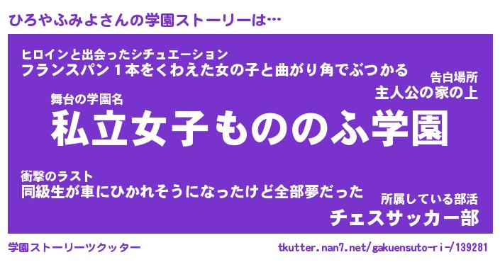 | 先生 | ひろやふみよ先生が勤める学校名『区立猫耳中学校』 |