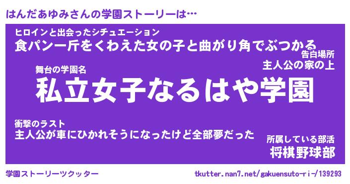 | 女子向けラノベタイトル風あだ名 | 『誰かこのはんだあゆみを説明してください! ~契約から始まるウェディング~』 |