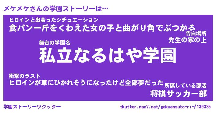 | 男性向けラノベタイトル風あだ名 | 『メケメケの憂鬱』 |