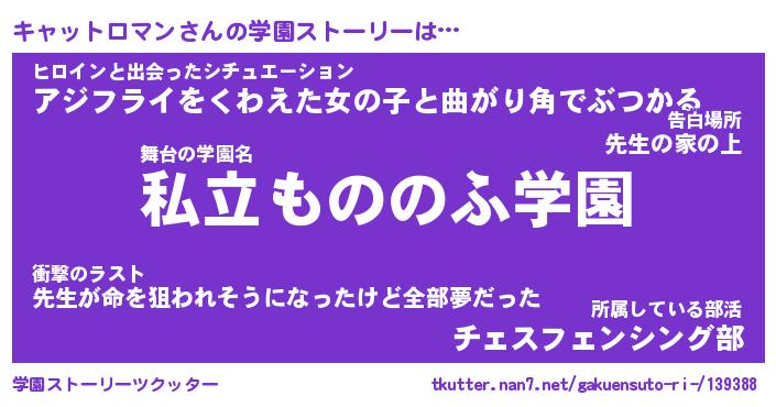 | 女子向けラノベタイトル風あだ名 | 『(仮)キャットロマンのやんごとなき事情』 |