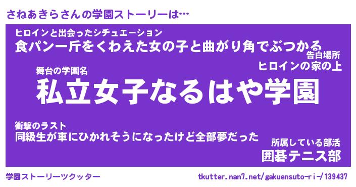| ファンタジー風あだ名 | 『サネフェル』『エターナルサネアキラー』 |