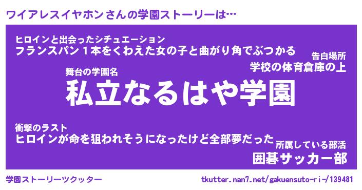 | 女子向けラノベタイトル風あだ名 | 『(仮)ワイアレスイヤホンのやんごとなき事情』 |