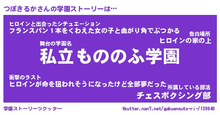| 男性向けラノベタイトル風あだ名 | 『つぼきるかの憂鬱』 |