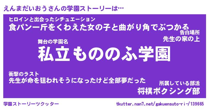 | 男性向けラノベタイトル風あだ名 | 『えんまだいおうの憂鬱』 |