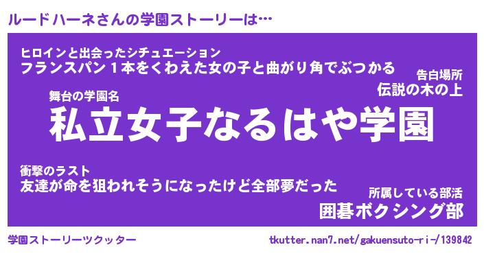 | ヒーロー風カッコイイあだ名 | 『スーパールードハーネ』『黄金騎士ルー』 |